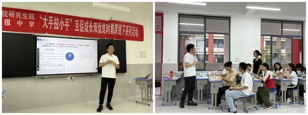 聚焦高中生核心需求,研究生志愿者沈昕祺、李洲熠結合自身成長經驗,帶來“學霸引擎”學習方法分享。他們系統(tǒng)講解了時間管理、精力分配與知識體系構建等實用策略,為學生們提供了可借鑒、可操作的學習路徑,助力提升學習效能。