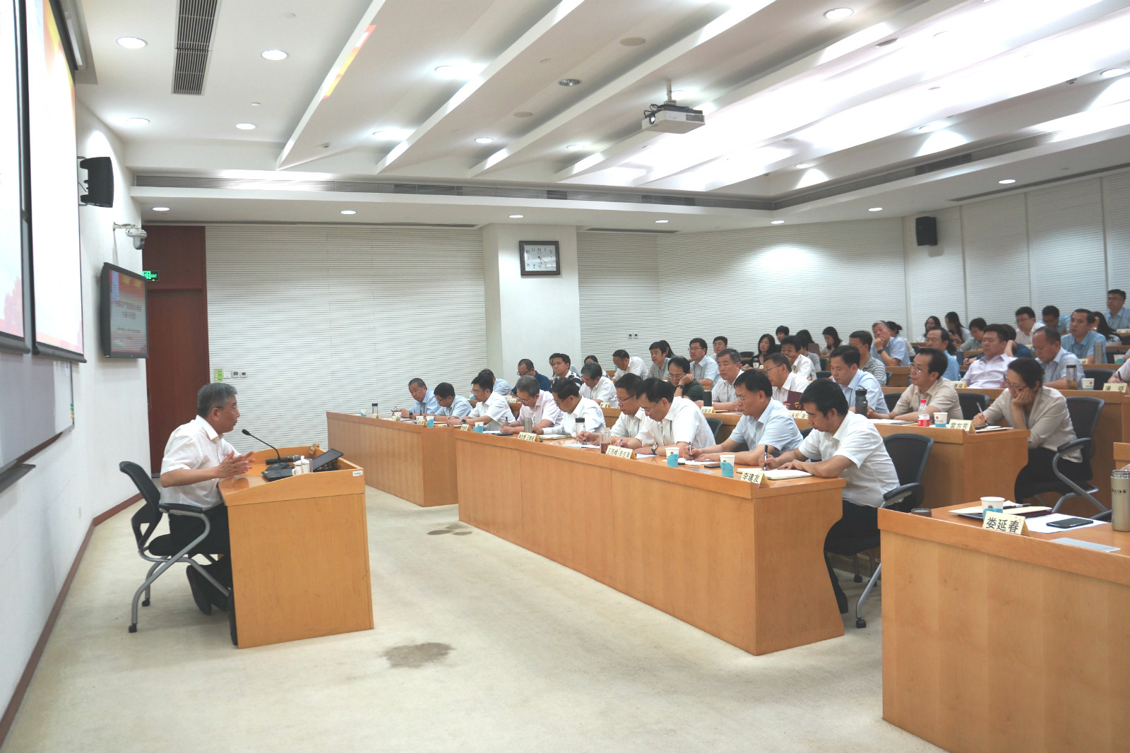 為扎實(shí)開展“不忘初心、牢記使命”主題教育,貫徹落實(shí)國(guó)資委黨委主題教育各項(xiàng)工作要求,610日至628日,集團(tuán)黨委在中央黨校(國(guó)家行政學(xué)院)舉辦了不忘初心、牢記使命主題教育領(lǐng)導(dǎo)干部專題培訓(xùn)班。培訓(xùn)班分兩期,每期5天,集團(tuán)領(lǐng)導(dǎo)班子成員、二級(jí)單位班子成員、董監(jiān)高人員、黨群人事部門負(fù)責(zé)人以及總部中層以上領(lǐng)導(dǎo)干部共計(jì)140余人參加了培訓(xùn)。黨委書記、董事長(zhǎng)、總經(jīng)理王德成主持了開班式。